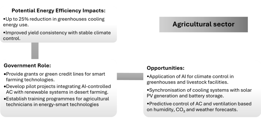 The implementation of AI-enabled smart controls in AC systems, when aligned with national DR strategies, represents a transformative opportunity for the UAE’s path toward a resilient, low-carbon energy future. Each sector, residential, oil and gas, industrial, and agricultural, stands to gain through energy savings, cost reduction and operational efficiency. By deploying targeted policies, incentives and regulatory frameworks, the UAE government can accelerate adoption, unlock large-scale DR potential and position the country as a global model in smart energy management and sustainable cooling innovation.